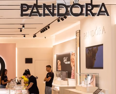 La marca és coneguda per les seves joies i charms personalitzables, que representen la major part de les vendes. Pandora dissenya, fabrica i comercialitza joies acabades a mà amb metalls d'alta qualitat a preus assequibles.